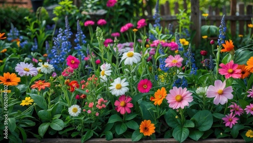 Fototapeta premium Vibrant floral display amidst garden greenery