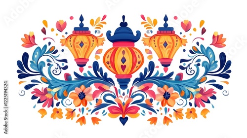 Fototapeta premium Vibrant Floral Folk Art Pattern with Ornate Decorative Elements