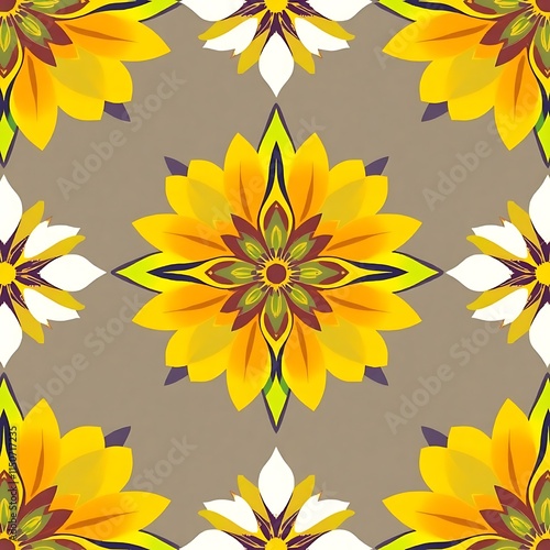© Michel, Obraz premium Vibrant Floral Mandala Seamless Pattern