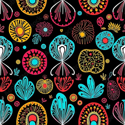 Fototapeta premium Vibrant Floral Pattern: A dazzling and intricate pattern featuring bold,...