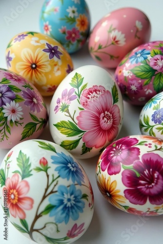 Fototapeta premium Vibrant floral patterns on hand-painted easter eggs, Tradition, Colorful