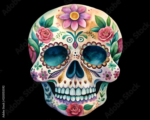 Naklejka premium Vibrant Floral Sugar Skull. A Day of the Dead Masterpiece