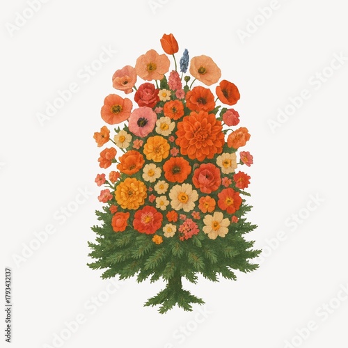 © Rawpixel.com, Naklejka premium Vibrant floral tree illustration.