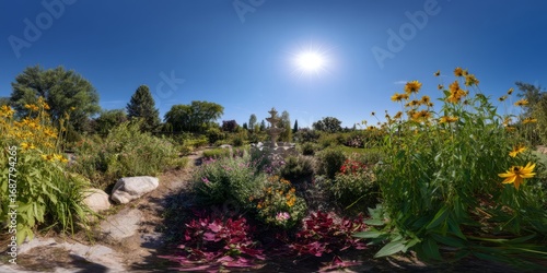 © HDR Image Creator, Obraz premium Vibrant flower garden in a sunny landscape nature scene floral photography outdoor serenity