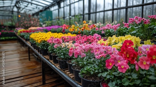 Fototapeta premium Vibrant flowers in a greenhouse
