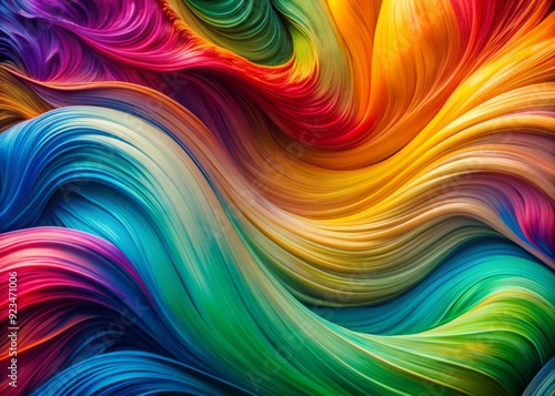 © Sirinporn, Fototapeta premium Vibrant fluid color brush strokes swirl and flow in wavy patterns, creating a mesmerizing abstract background with 3D acrylic texture and dynamic rainbow hues.