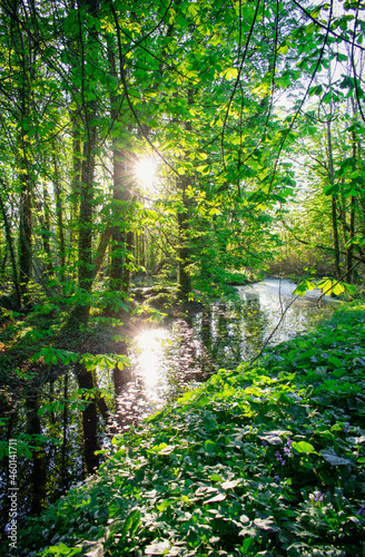 © alan, Obraz premium Vibrant Forest With Natural Waterscape