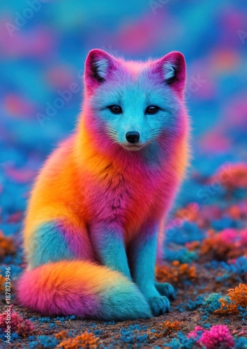Obraz premium Vibrant fox in colorful landscape.