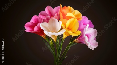 © Amphon, Naklejka premium Vibrant Freesia Bouquet Close up on Dark Background