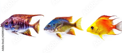 © Sakdecha, Naklejka premium Vibrant Freshwater Fish Display on White Background for Nature Lovers