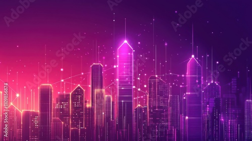 Fototapeta premium Vibrant Futuristic Cityscape at Dusk with Digital Light Effects