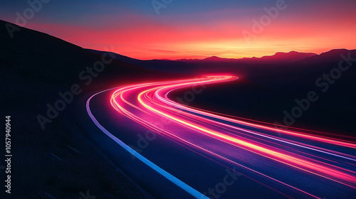 Naklejka premium vibrant futuristic scene featuring illuminated neon lights and dynamic light streaks, evoking a sense of technology, innovation, and the thrill of the unknown in a sci-fi landscap
