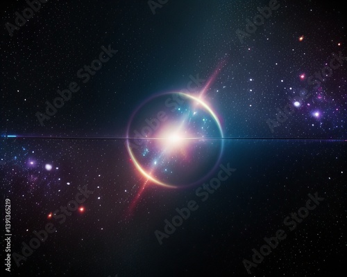 © Quy, Fototapeta premium Vibrant galaxy background with swirling rainbow colors.