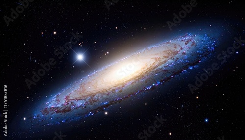 © Ahmad, Fototapeta premium Vibrant Galaxy Core with Luminous Halo and Sparkling Stars on Dark Cosmic Canvas