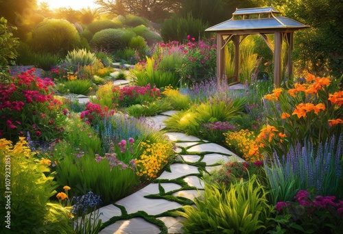 Obraz premium vibrant gardens innovative landscape designs featuring diverse colorful...