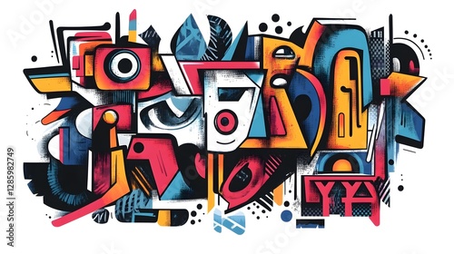 © Everything by Rachan, Obraz premium Vibrant Geometric Abstract Art Design with Colorful Shapes and Patterns