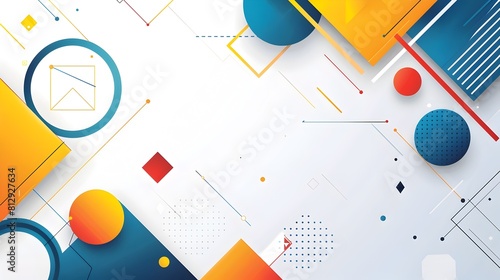 © Prasong Takham, Obraz premium Vibrant Geometric Abstract Background with Minimalist Copyspace and Flat Design Graphic Elements