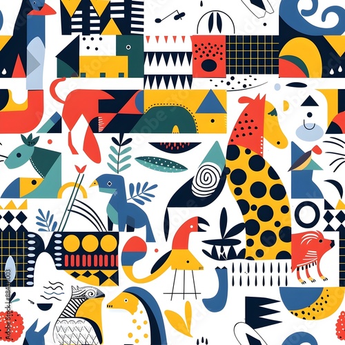 Fototapeta premium Vibrant Geometric Animal Pattern in Playful Abstract Design