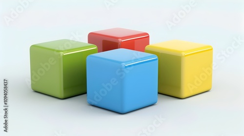 © Kraiwit, Obraz premium Vibrant Geometric Cubes - Minimalist Classic Baby Toys in Bright Studio Setting