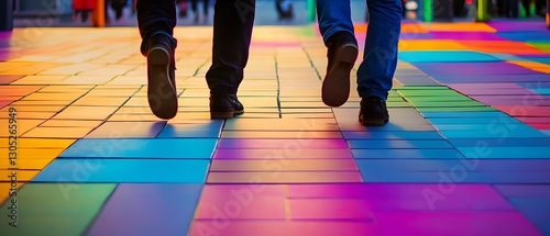 © Jittapon, Fototapeta premium Vibrant Geometric Flooring Colorful Tile Patterns for Modern Interiors This image showcases a dynamic and eye catching floor design featuring a kaleidoscope of vivid