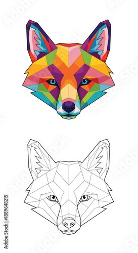 Fototapeta premium Vibrant Geometric Fox Head Illustration with Modern Polygon Patterns and Outline