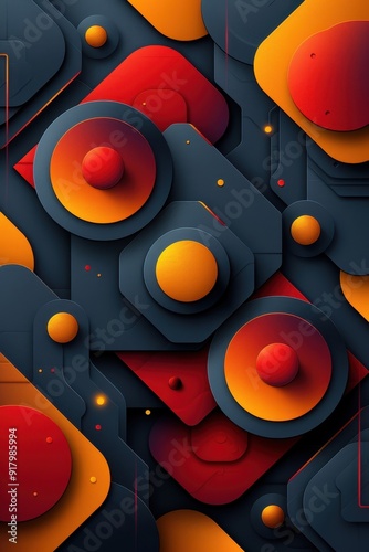 Obraz premium Vibrant geometric shapes and overlapping lines in dynamic red, orange, and...