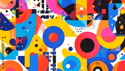 © ema, Obraz premium Vibrant geometric shapes collage dance
