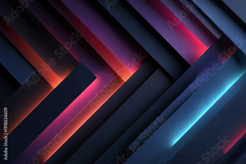 Obraz premium Vibrant geometric shapes with glowing red and blue lines on dark background