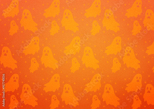 © aurora_dew, Obraz premium Vibrant Ghost Halloween Orange Background for Designs