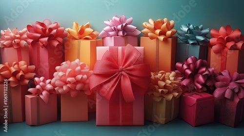 © Saltanat, Obraz premium Vibrant Gift Boxes with Oversized Bow Ribbons