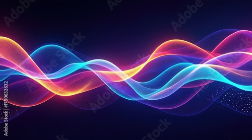 © MDBAKHTIAR, Naklejka premium Vibrant glowing sound wave with particles on dark background