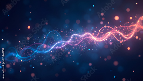 Fototapeta premium Vibrant glowing wave patterns with sparkling particles on a dark background,...