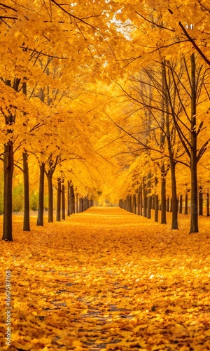 © Ummahfx, Fototapeta premium Vibrant Golden Autumn Forest with a Path