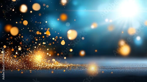 Fototapeta premium Vibrant golden glitter explosion with sparkling particles and light rays...