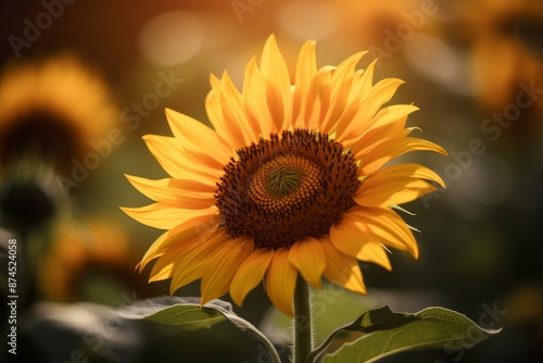 Fototapeta premium Vibrant golden hour sunflower bloom glowing in the warm sunlight of a summer...
