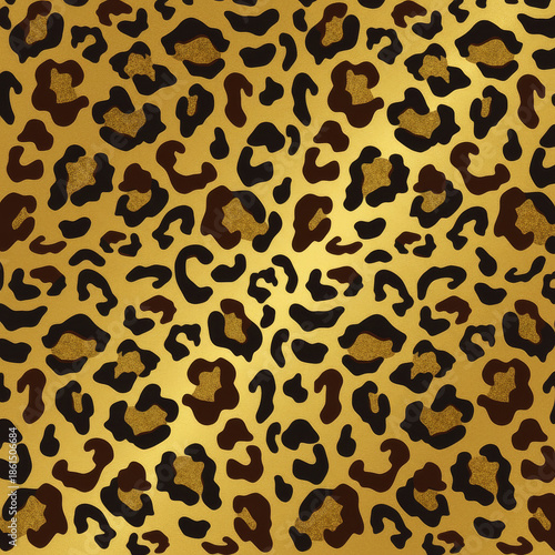 © Malik, Fototapeta premium Vibrant golden leopard print pattern with dark brown spots