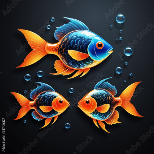 Fototapeta premium Vibrant goldfish swimming in bubbles against a dark background