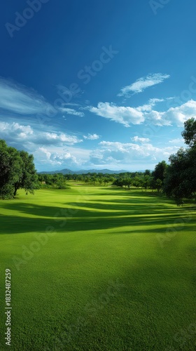 © ART BY SAIFUL, Obraz premium Vibrant golf course landscape under blue sky