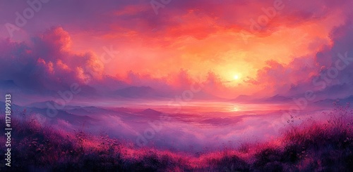 © zong, Fototapeta premium Vibrant Gradient Abstract Background Red Pink Orange Soft Noise Texture Summer Design