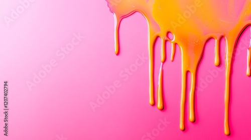 © พงศ์พล วันดี, Naklejka premium Vibrant Gradient Flowing Liquid with Holographic Effect and Melting Drips on Pink Background