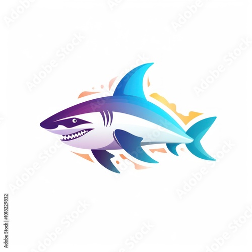 Fototapeta premium Vibrant Gradient Shark Illustration on White Background. Modern Marine Vector...