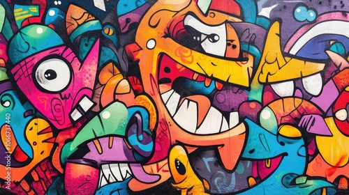 Fototapeta premium Vibrant Graffiti Art Background with Colorful Cartoon Characters and...