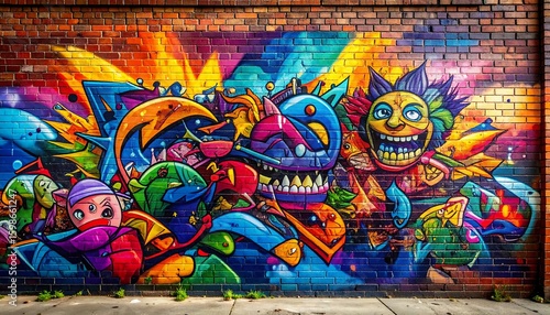 Fototapeta premium Vibrant graffiti art on brick wall (1)