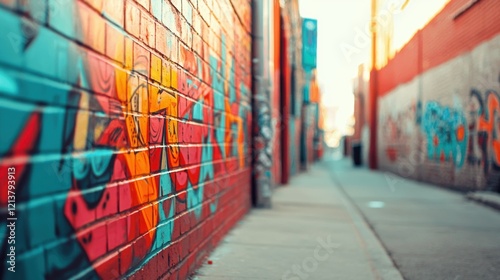 Fototapeta premium Vibrant Graffiti Art on Brick Wall in Urban Alleyway
