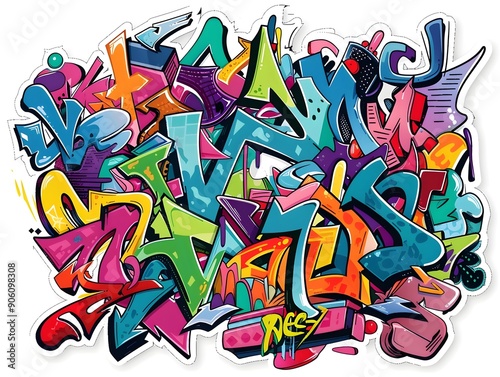 Naklejka premium Vibrant Graffiti Inspired Sticker Design for Streetwear and Fashion Apparel