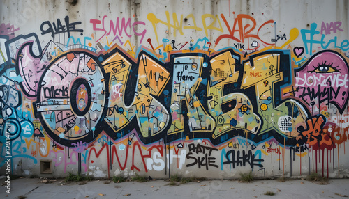 Fototapeta premium Vibrant graffiti mural on a concrete wall with colorful street art