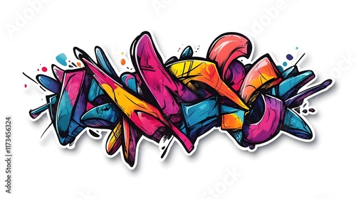 Naklejka premium Vibrant Graffiti Mural on Urban Street Wall with Colorful Abstract Spray...