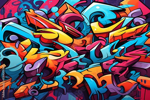 Obraz premium Vibrant Graffiti Shapes and Lines Wallpaper, Abstract Graffiti Wallpaper,...