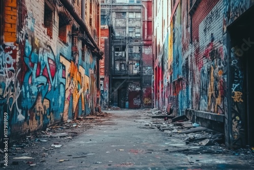 Fototapeta premium Vibrant Graffiti Street Art in a Gritty Urban Alleyway