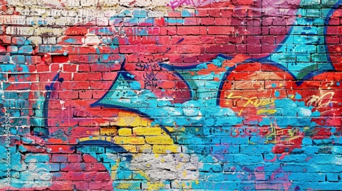 © Lakkhana, Fototapeta premium Vibrant graffiti texture on an urban brick wall